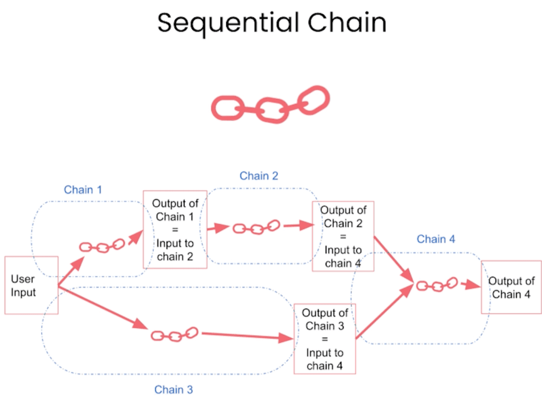 SimpleSequentialChain - this allows the output of the first chain is used as the input for the second chain and so on.
